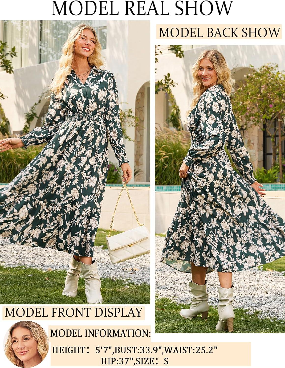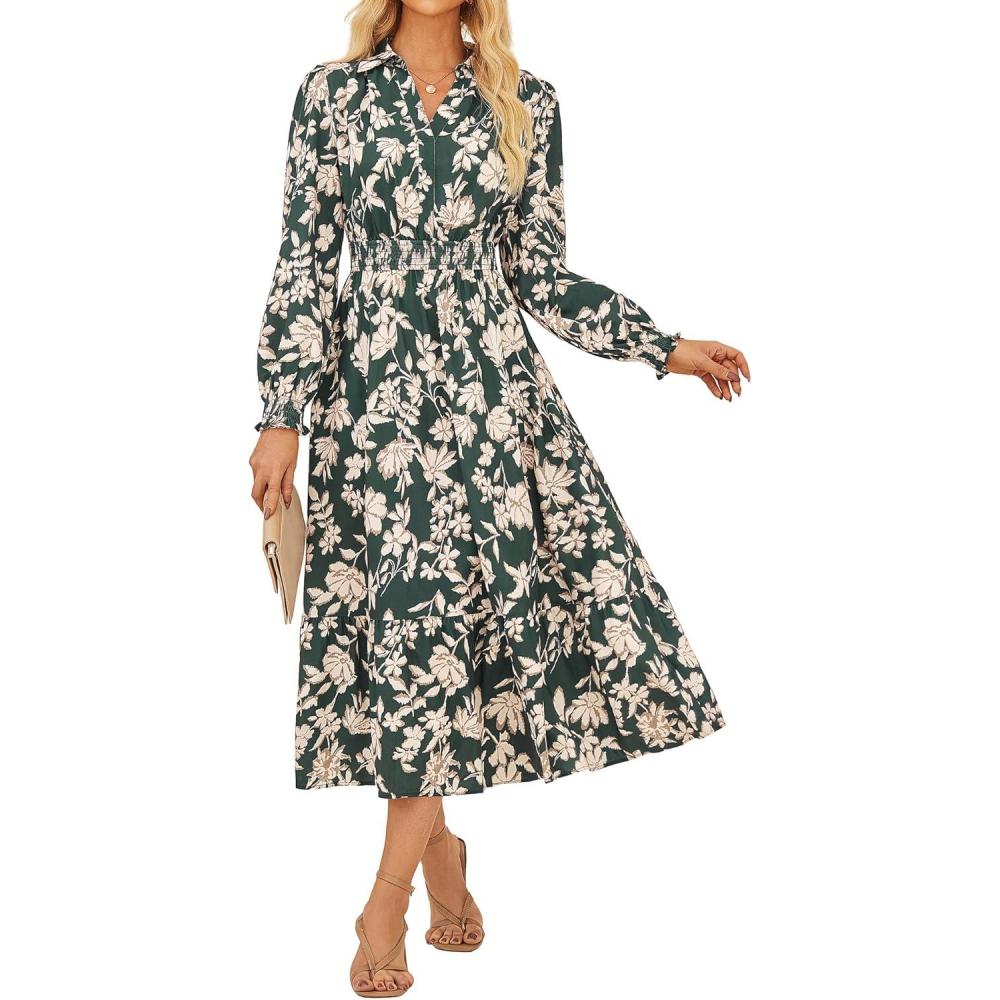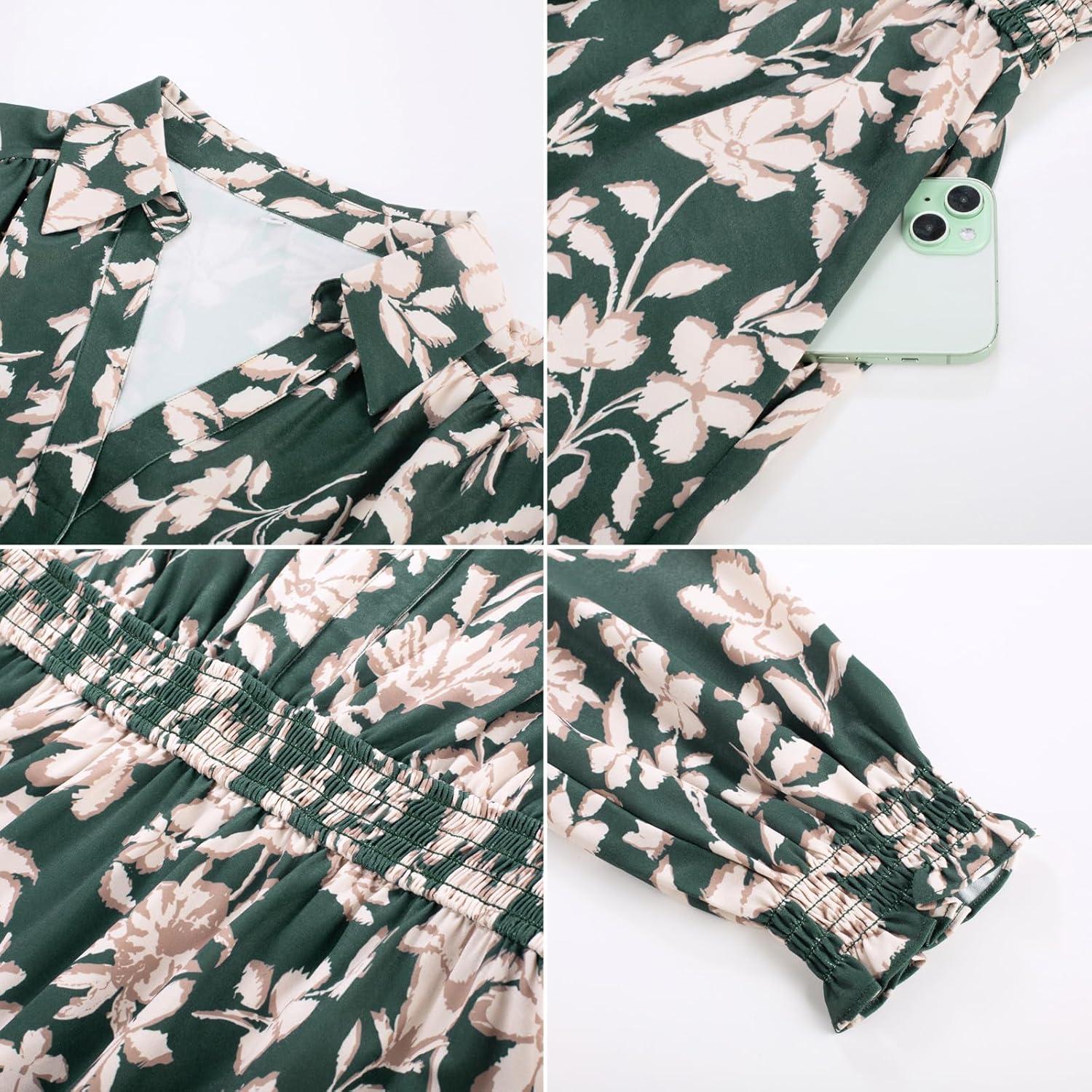 Don’t wait, get up to 50% off on Women’s Floral Dress for Women 2025 Fall Midi Dress Casual Long Sleeve V Neck A Line Flowy Shirt Dresses with Pocket(Green With Beige Floral) during our end-of-season sale event.