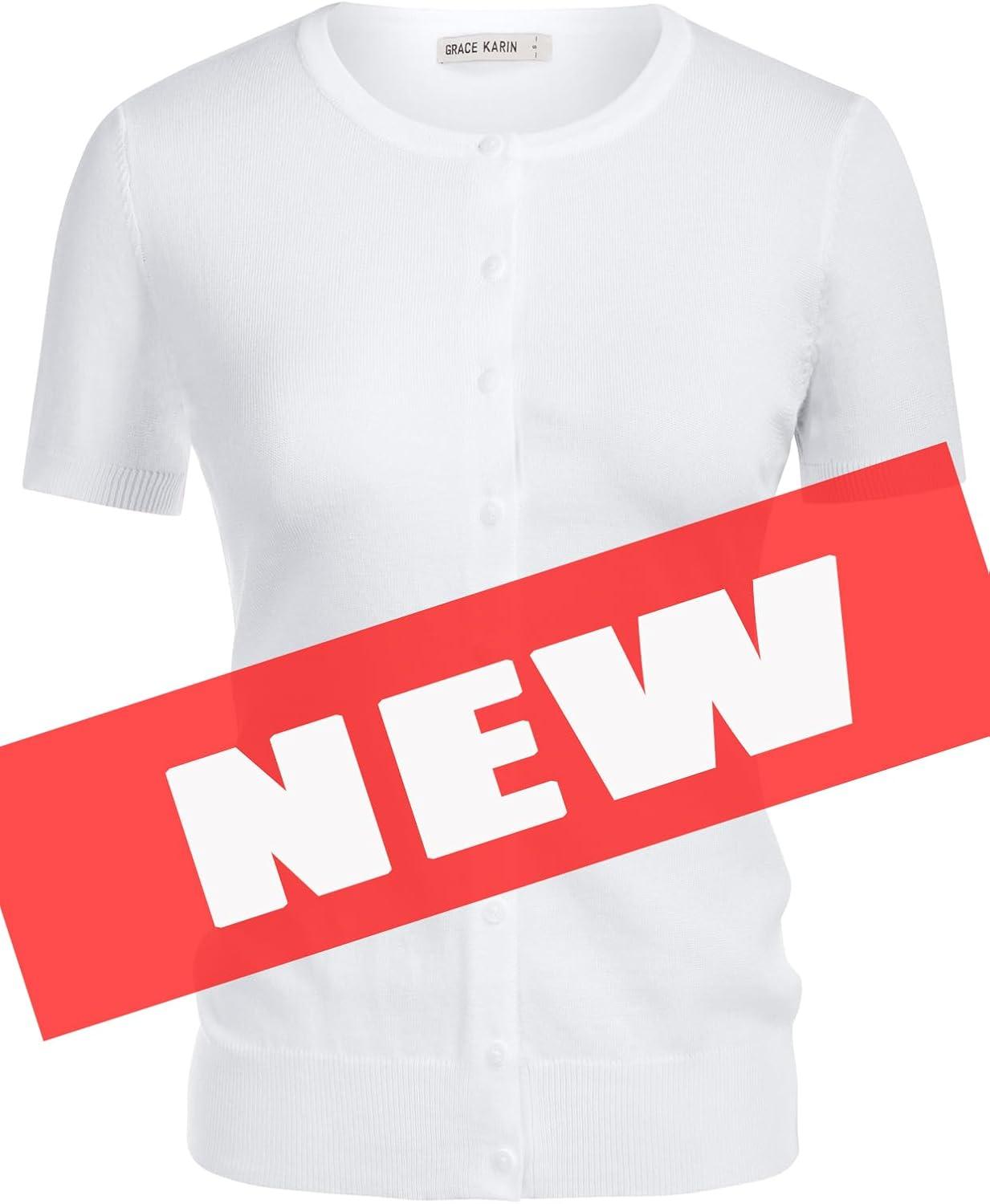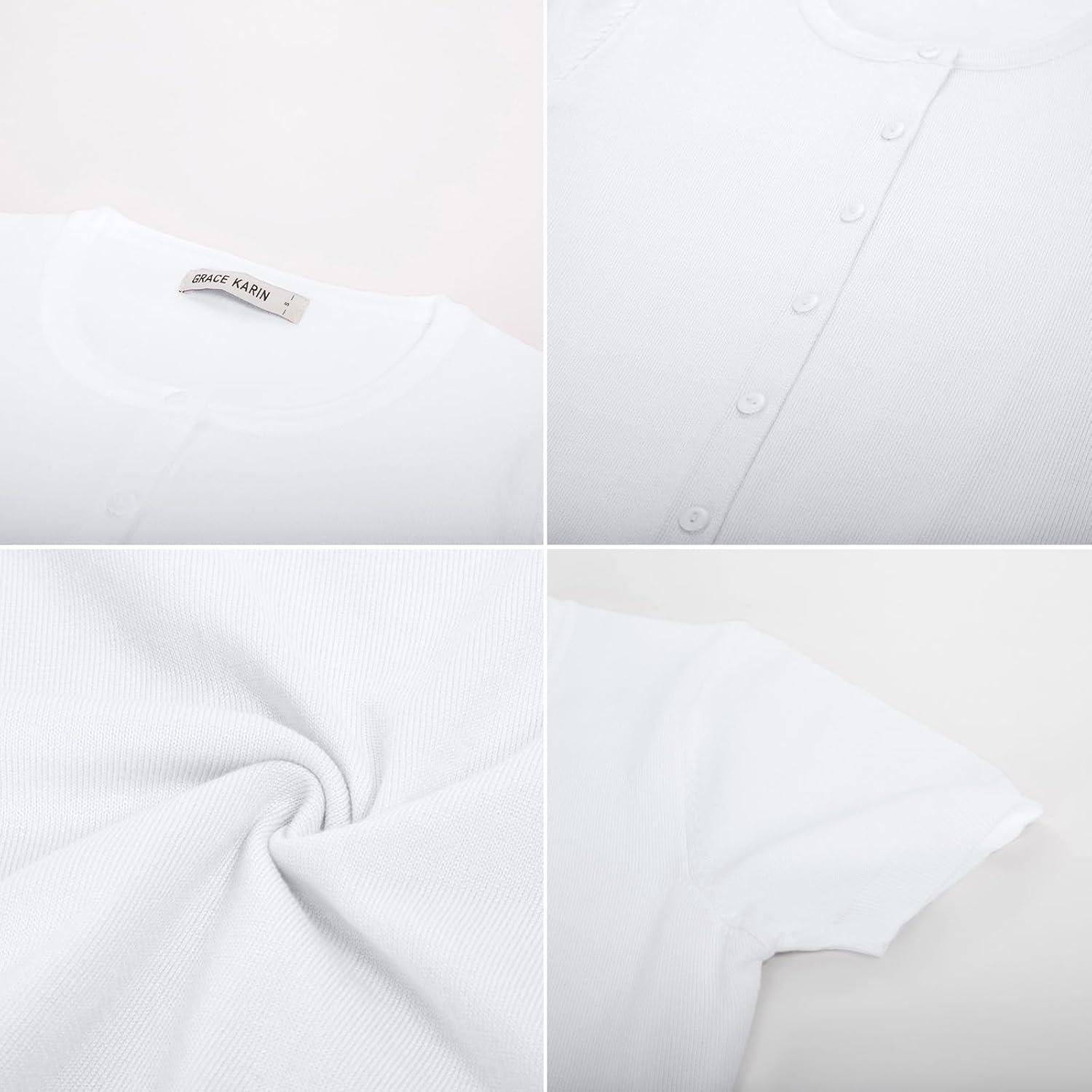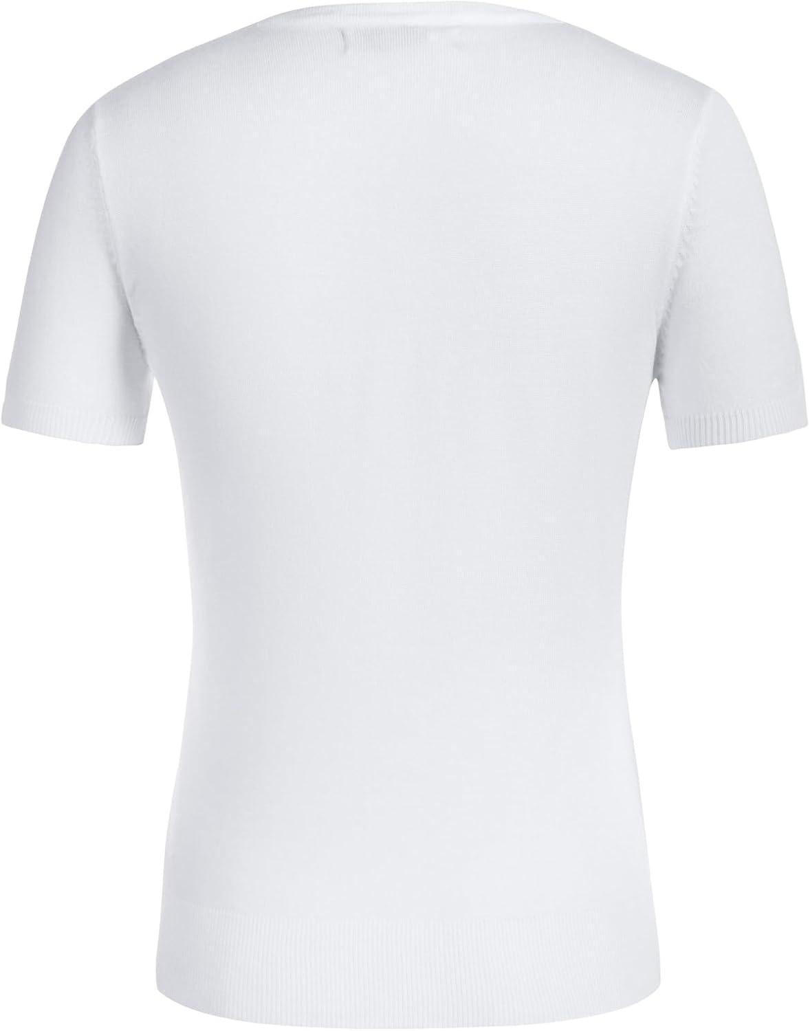 Womens Short Sleeve Cardigan Crew Neck Basic Casual Button Down Knit Soft Sweater(Bright White)