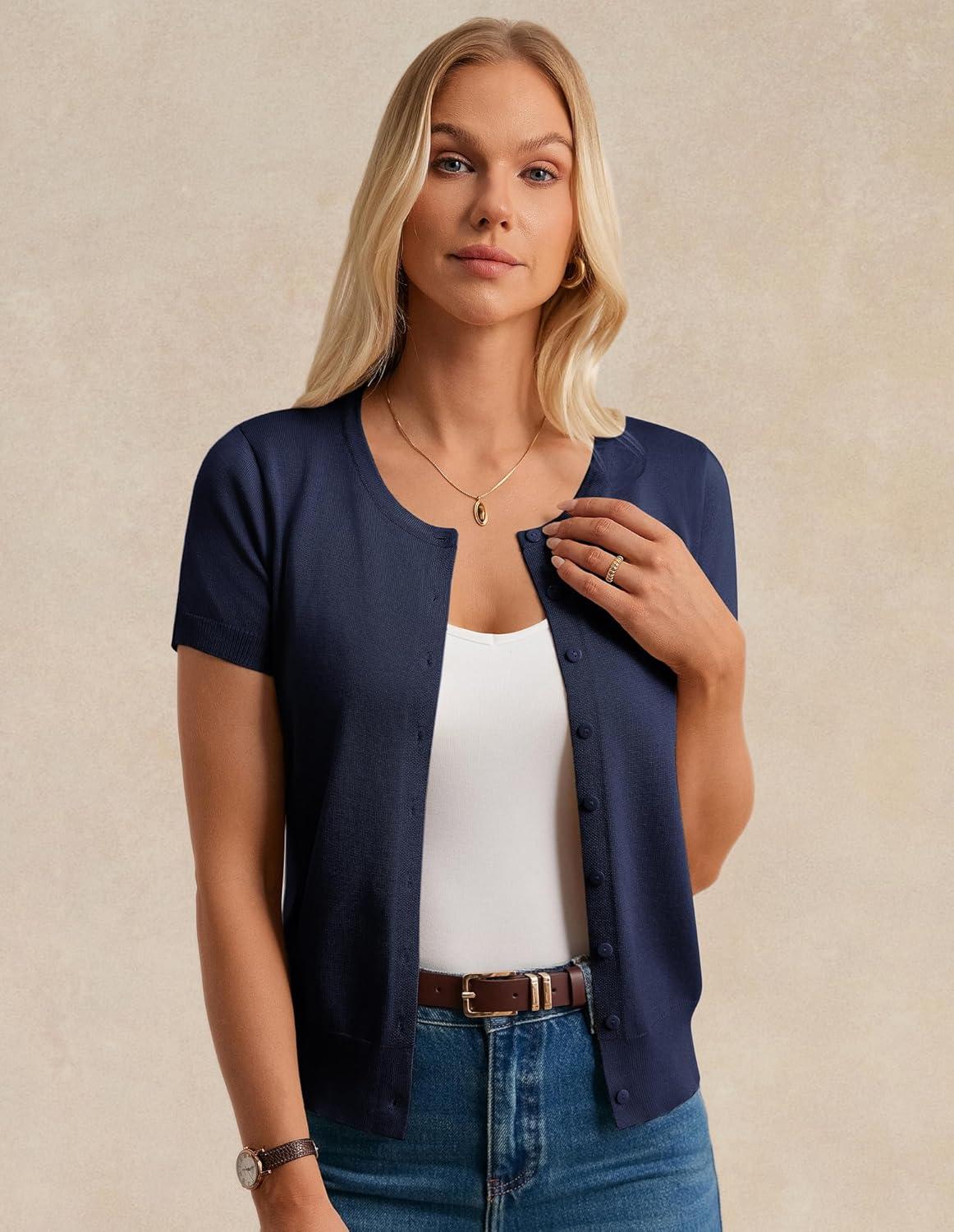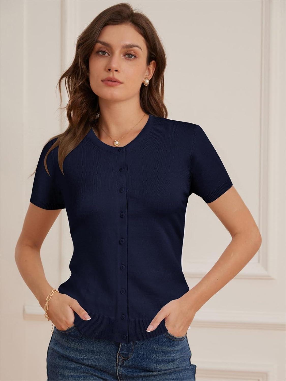 Score big on Womens Short Sleeve Cardigan Crew Neck Basic Casual Button Down Knit Soft Sweater(Navy) and accessories during our BOGO sale. Buy one, get one 50% off!